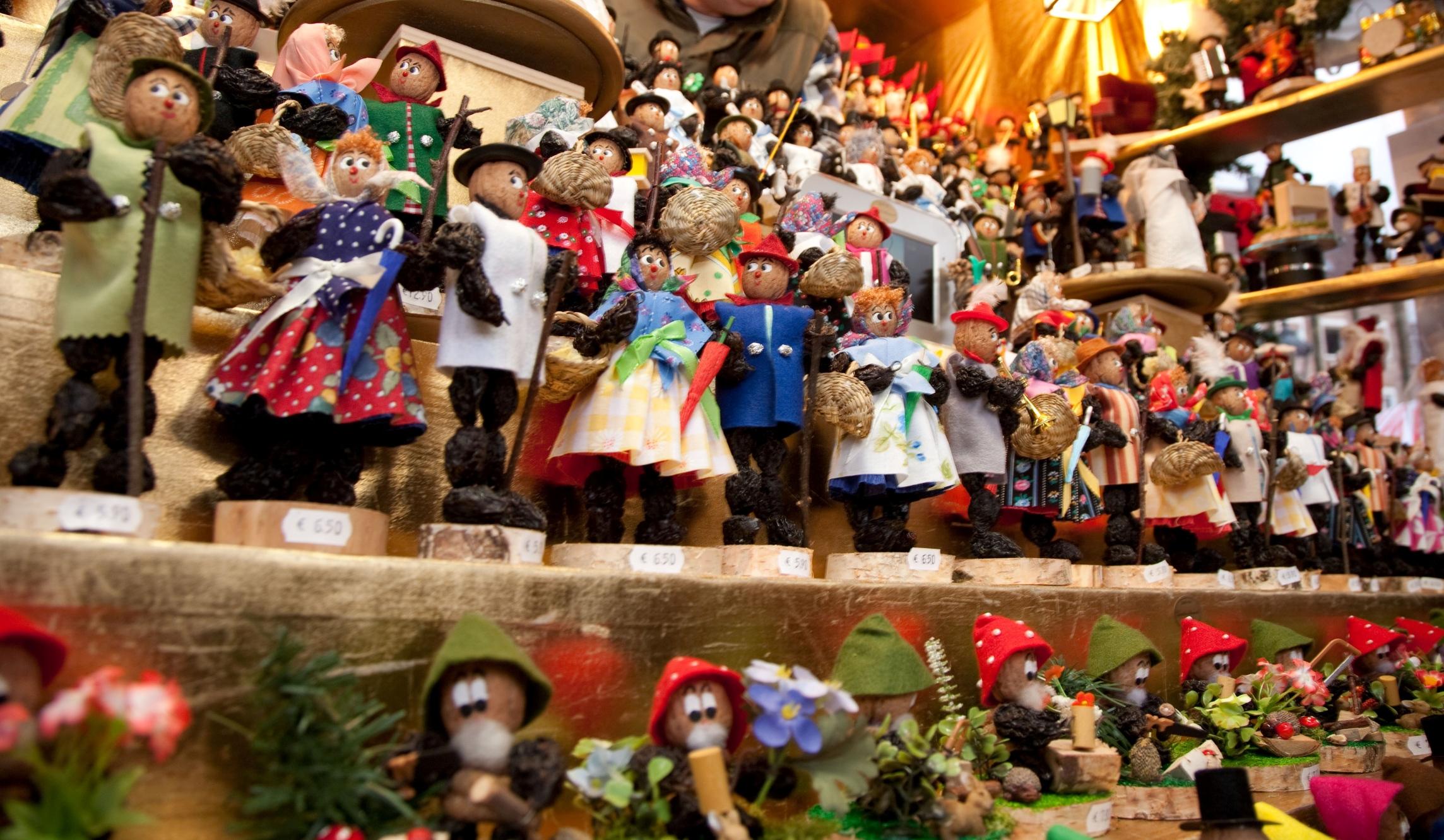 In den Buden auf dem Nürnberger Christkindlesmarkt funkelt und glitzert es alle Jahre wieder. Denn die Standbesitzer bemühen sich sehr, ihre Waren möglichst ansprechend zu präsentieren. Dafür werden sie auch belohnt. Seit 1981 gibt es den "Goldenen Zwetschgermoh" - diesen Preis erhält jedes Jahr die hübscheste Bude auf dem Christkindklesmarkt.
