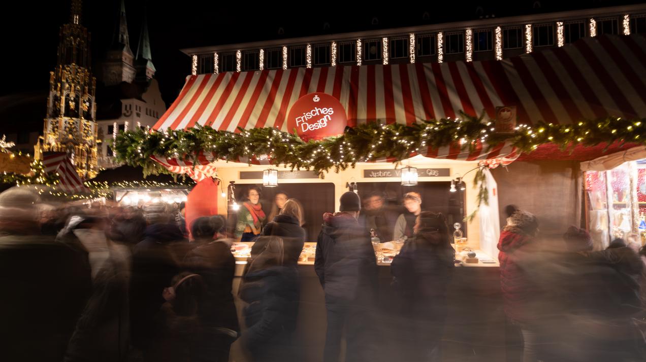 In die speziell für den Christkindlesmarkt entwickelte Pop-Up-Bude hat FrischesDesign Künstler*innen und Designer*innen aus der Region aufgerufen, im Wechsel von ein bis drei Tagen ihre handgefertigten Unikate und Kleinserien wie Schmuck, Keramik, Kinderaccessoires, Holzobjekte und mehr zu verkaufen und zum Gespräch einzuladen.