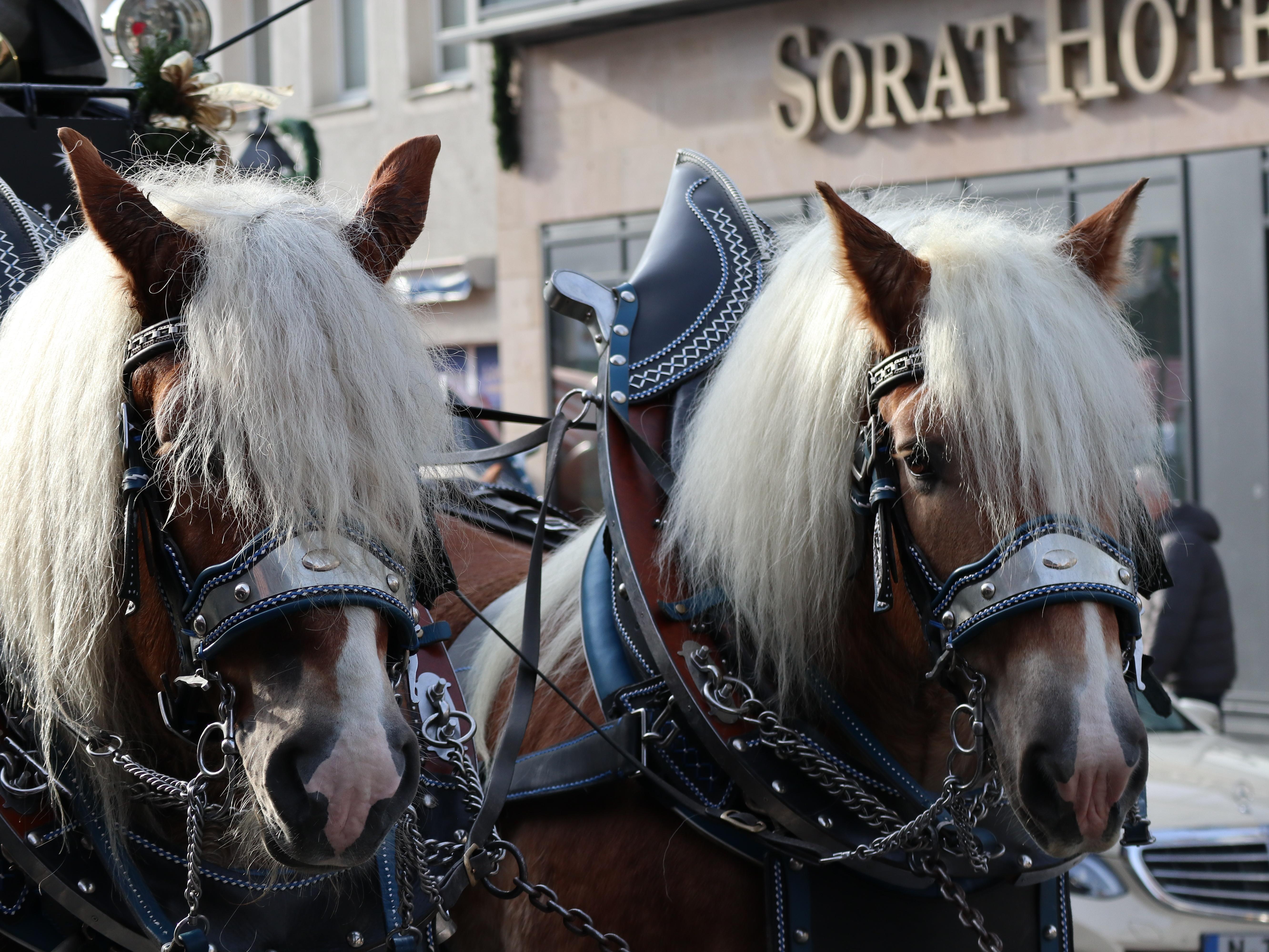Im gemächlichen Pferdegang ziehen die massigen Vierbeiner das Gefährt durch die Straßen und Gassen. „Die Pferde sind erfahrene Festumzugs-Teilnehmer. Wir laufen auch beim Rosenmontagszug in Köln oder beim Münchner Oktoberfestzug mit“, betont Lehneis. Alle drei bis vier Stunden tauscht er die Kutschpferde gegen ein frisches Paar aus. Muss die Kutsche an der Haltestelle auf Fahrgäste warten, schützen flauschige Decken gegen die Kälte.