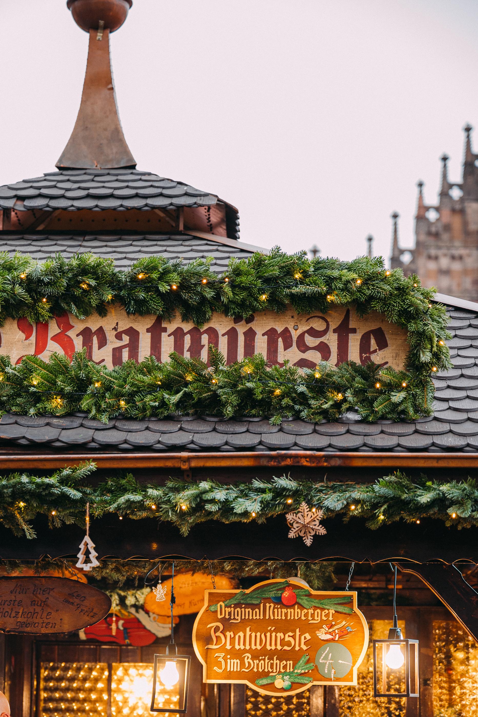 Auf dem Christkindlesmarkt genießt man die Nürnberger Bratwürste klassisch als „3 im Weggla“ – also drei Würstchen im Brötchen. Man findet die Bratwurstbuden auf dem Markt sprichwörtlich an jeder Ecke, und das ist genau so gemeint. Denn die Bratwurstbuden sind auf dem Markt eher am Rand platziert, damit ausreichend Platz ist um in Ruhe die leckeren "3 im Weggla" zu verzehren. Doch wenn Sie von einigen Einheimischen hören „dort an der Ecke schmeckt die Bratwurst seit Jahren am besten“, dann kann das nicht sein. 😊